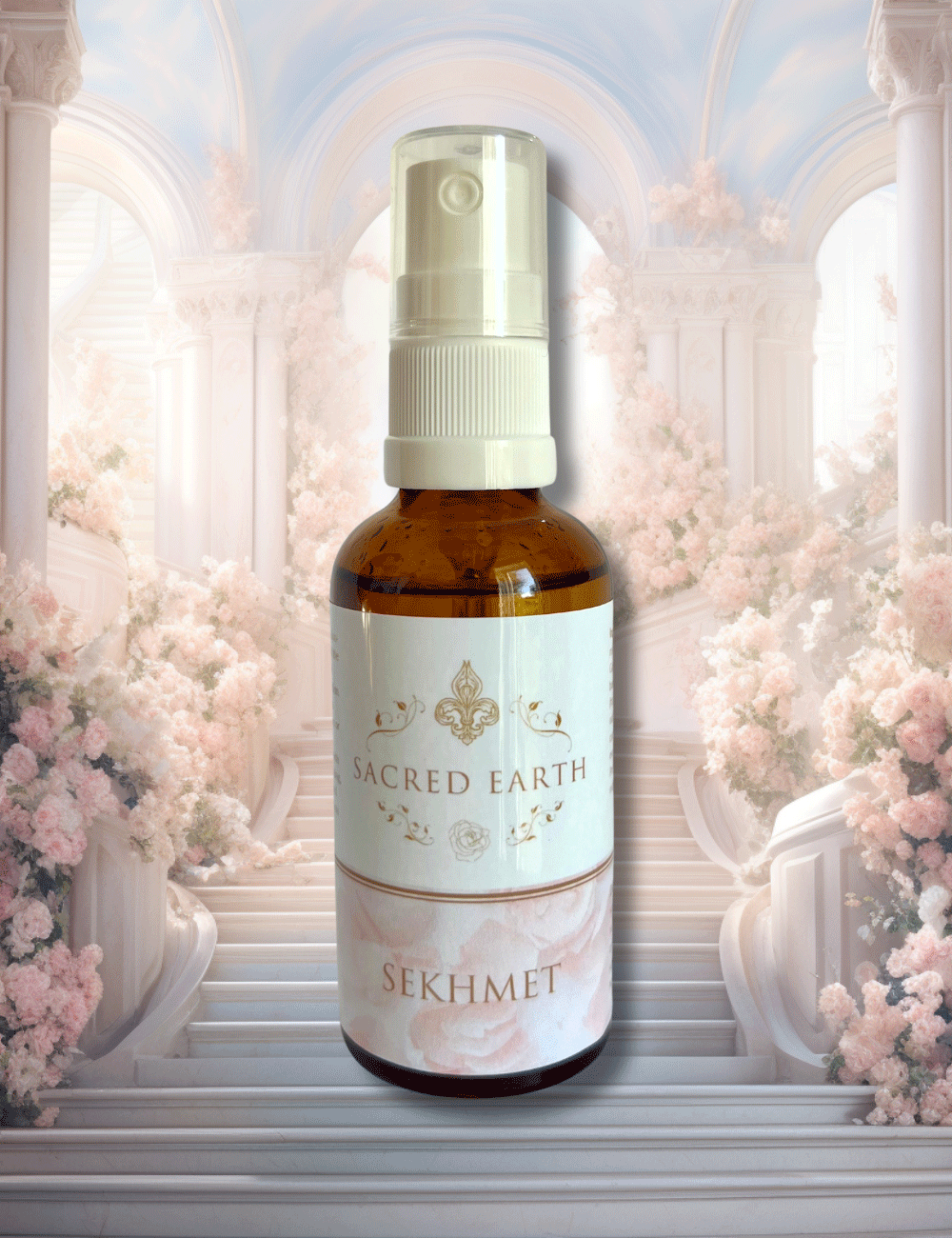 Sekhmet is ancient Egyptian lion-headed fire goddess, known as the daughter of the Sun god Ra. A warrior goddess of the Sun, power and healing, war and destruction. She is here as a guide to support your awakening and brings through ancient healing called Sekhem or Seichem that was used in Ancient Egypt, Atlantis and Lemuria. Working with her consort Ptah the God of healing this spray anchors this healing to support us and the Earth. She wishes you to understand that invoking her power brings the destruction, removal of the old, stagnant and unsupportive energy that is not supporting your greatest path and being. She is here to ignite your heart and power helping you to be your mighty, powerful, God/Goddess filled self. May her light, power and the Sekhem healing energy empower all that you are, aligning you with and manifesting your greatest potential.